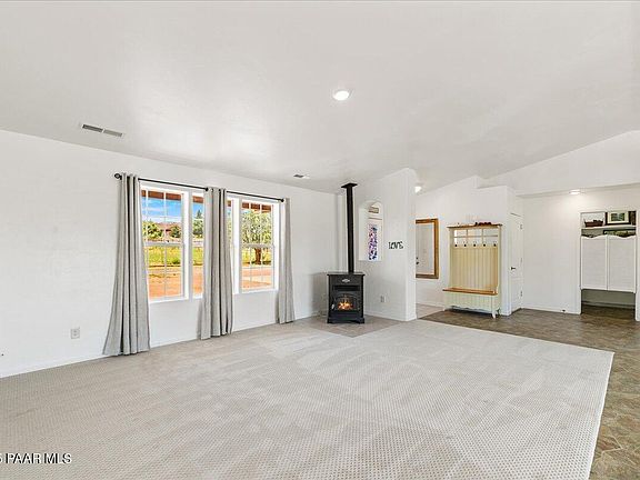Welcome to your own slice of country living on three fully usable acres in the heart of Chino Valley, featuring all-paved access and a strong 10 GPM well. The property is level, fully fenced, and thoughtfully designed to support a variety of lifestyles, from gardening to horses. With a brand-new roof (2024), updated HVAC system (2025), and a full remodel in 2017, this home is truly move-in ready and built to last.Inside, the spacious living room boasts vaulted ceilings and large windows that fill the space with natural light. The open-concept layout flows easily into the kitchen, where you'll find rich wood cabinetry, stainless steel appliances, and a generous pantry--with the option to relocate the washer and dryer back inside if desired.The primary suite is tucked away in the split floor plan, creating a private retreat complete with a remodeled bath featuring a dual-sink vanity and shower/tub combination. Two additional bedrooms are comfortably sized for family or guests and share access to another updated full bath. Plush Berber carpet adds warmth and comfort in the bedrooms.Step outside to enjoy the expansive covered back porch, the ideal gathering spot for entertaining or relaxing, complete with a newer hot tub. A freshly poured RV pad makes storing larger vehicles or trailers simple, while two oversized storage sheds provide plenty of space for tools, equipment, or hobbies. The land has been leveled and is ready for you to design the horse property, garden, or outdoor space you've been envisioning. With a water filtration and softener system, plus two included riding mowers to make lawn care easy, this property blends functionality with potential.Modern updates meet country charm in this Chino Valley home, offering comfort, privacy, and room to grow, all in a fantastic location.