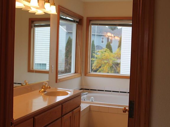 This Single-Family home is located in the Bethany Oaks neighborhood. Built 1995. Close proximity to Intel and Nike with easy access to Hwy 26. 4 bedroom/2.5 bath home 2000 Sq. Ft. Attached two-car with additional storage area. Fully fenced backyard. Programmable Sprinkler system. New neutral carpeting throughout the home. Gas fireplace Hardwood Entryway and Family room. Cul-de-sac Breakfast nook with bay window. Microwave, Refrigerator, Washer and Dryer included. Lots of light with bay windows in Master, living, kitchen. Master bath with solid surface double bowl vanity top sink. Tiled Bath Tub Glass shower. Walk In closet with built in shelving and storage space. Gas Heating and A/C. Oven, dishwasher, and refrigerator with ice maker and water dispenser Cable-ready High vaulted Ceiling in Living room Resident is responsible for all utilities Approx. monthly cost $200. SCHOOLS Elementary: Oak Hills Middle School: Meadow Park High School: Westview Within walking distance of Bethany Village, Tualatin Hills Recreation Center (THPRD), Very close to highway 26. Rent includes landscaping! Minimum 1 year lease. Move-in ready. Application fee: $40 per adult.