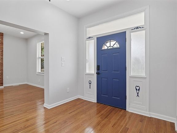 AMAZING RENOVATION! This gorgeous stately all brick home has been tastefully remodeled from top to bottom and features 5 bedrooms and 3 full bathrooms. The foyer is one of a kind with beautiful wood staircase, coat closet, and new upholstered bench. The high ceilings and new hardwood flooring are impressive. Spacious living and dining room with exposed brick decorative fireplace. Fully equipped kitchen has granite counter tops, butcher block island, stainless steel appliances, and marble back splash that everyone will love. Juliet balcony off of kitchen overlooks the flat back yard and MASSIVE drive way that fits 8 vehicles. Main level full bathroom has tile shower and unique back splash. 2nd level laundry room is conveniently located for a large family. All the bedrooms have modern light fixtures and custom blinds. Home has 2 furnaces and A/C units to keep everyone comfortable. Covered front porch is a great space to enjoy the outdoors. All you need to do is move in!