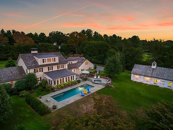 This contemporary colonial home sits in the center of two and a half verdant acres in Greenfield Hill. It's Sweeping lawns are in both the front and back yards extending from Redding Road to Banks North Road. A modern Barn with two bays and a fully winterized workshop share the property with the main house. Three garage bays are integral to the house and enjoy room to turn around in addition to a sweeping circular drive. The back of the house offers complete privacy on a sun-lit terrace with a Gunite pool and hot tub. The heated sun porch has views west over the 10th fairway of the Patterson Golf Club. The house has six bedrooms including a ground floor master featuring his and her walk-in closets and a steam shower. One bedroom has served as a nanny's apartment with a separate entrance. A wood-paneled front den enjoys one of two fireplaces. A third floor office/family room enjoys sweeping westward views from one of the area's highest points. With only two owners in its 50 years, this home has proven to be a keeper. It exudes a warm and welcoming feel that provides the backdrop to years of holiday and seasonal entertaining.