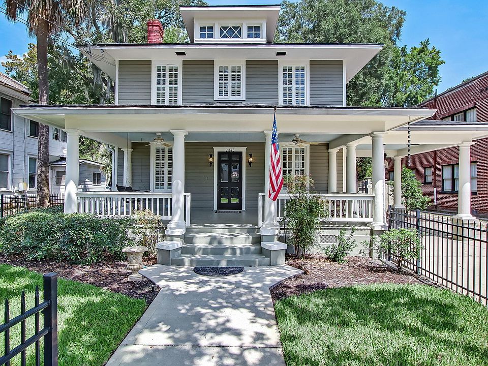 Opportunity Knocks! This classic 1922 home, with charming porte-cochere, is located in the sought after Riverside/ Avondale Historic District & zoned CRO. Large front porch welcomes you to this attractive home.(Exterior of main house & detached 2 car garage freshly painted in Sept. 2020). House features spacious, sun-filled rooms & 5 fireplaces, Plantation Shutters throughout main house! It has that 'hard-to-find' DOWNSTAIRS bedroom with attached full bath, & beautifully remodeled white cabinet kitchen with gas cook-top & stainless appliances. 3 bedrooms & 2 recently renovated full baths upstairs. 2 story, 2 car detached garage (built in 2008) has another star feature - a 1 bedroom guest apartment with full kitchen. Property currently being used as a short-term rental. A 5-STAR property