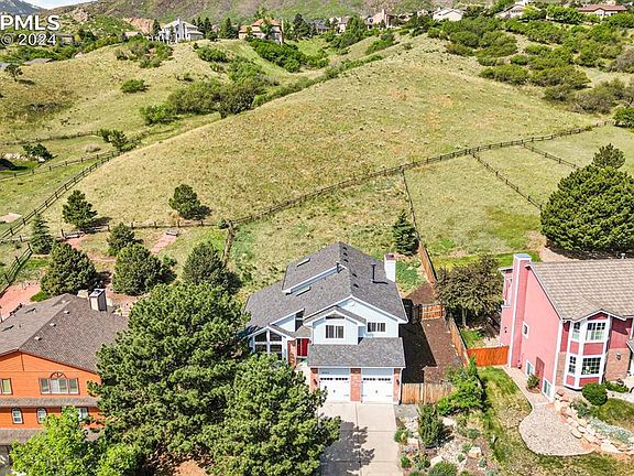 ***SEE VIRTUAL TOUR*** Welcome to this exceptional home in the highly sought-after Mountain Shadows neighborhood, set on a spacious 1/3-acre lot! This distinctive property offers a private, fenced backyard with no rear neighbors, making it truly unique. Inside, you'll find vaulted ceilings and an abundance of natural light. The main level includes a laundry room, a remodeled powder room, a dining room, a formal living room, and a family room with a charming brick wood-burning fireplace. At the heart of the home is a completely remodeled kitchen with high-end granite countertops, custom hardwood cabinets, slow-close drawers, a Wolf gas range, vent/hood, and all-new appliances. Luxury vinyl floors and new trim have been installed throughout the home, adding durability and style. Several windows and a sliding glass door have been replaced, ensuring energy efficiency. The front yard features new xeric landscaping with rock work, a Russian Hawthorn, and a Green Spear apple tree, creating a beautiful, low-maintenance outdoor space. New privacy fencing and a separate enclosure make the backyard perfect for your four-legged family members. Recent home improvements include new bathroom toilets, a new roof installed in 2021, new air conditioning installed in 2021, and two new garage doors. Upstairs, the master retreat offers a luxurious escape with an attached 5-piece bath, two walk-in closets, and breathtaking views of the foothills. The two additional bedrooms also provide city views and share a full bathroom. The garden-level basement remains unfinished, offering nearly 1200 sq ft to customize to your liking or use as storage space. This home provides easy access to various amenities. It is just a short distance from military installations, hiking trails, and dining and shopping options. This rare property combines privacy, stunning views, and endless potential in a prime location.