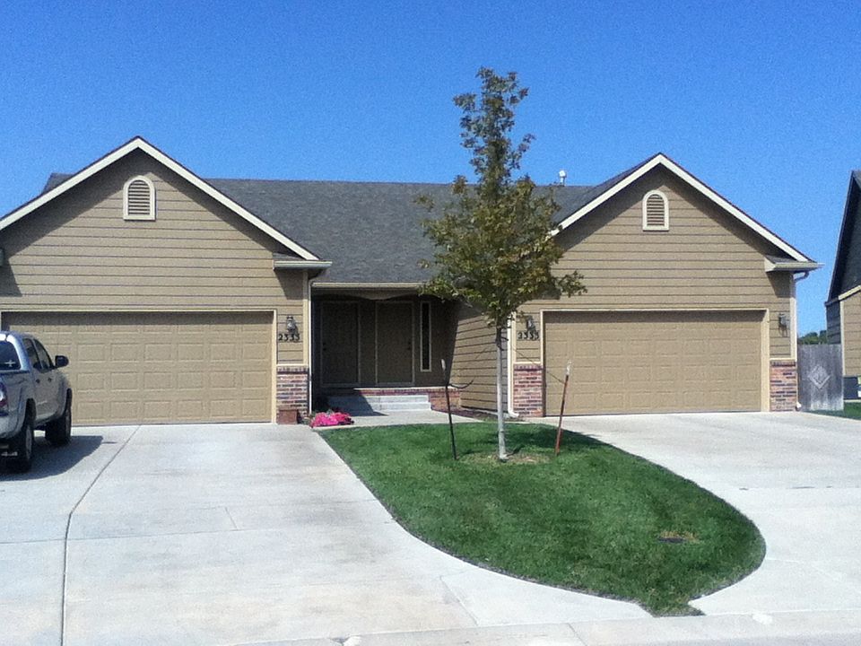 This beautiful townhome is located on a quiet cul-de-sac in southeast Wichita. With 2,200 feet of living space you'll love calling this your home. Four bedrooms, and two full bathrooms with a full-finished basement and 2-car attached garage. Vaulted ceilings, darkwood cabinetry, kitchen island and a main floor utility/mudroom. Smooth-top electric range, built-in micro & dishwasher and refrigerator are included. Layout: the master and second bedrooms are on the main floor, with the other two bedrooms in a nicely finished basement, which also includes a 30 ft. family room and another full bath. Covered Patio off the kitchen overlooks a sodded back lawn with privacy fence. Landscaping service included, sprinkler system water is paid by owner. Reasonable utility rates. Professionally managed with 24 hour Emergency Maintenance 12 month lease. Short-Term leases available for additional monthly fee. Pets allowed with restrictions and additional fees required. Resident responsible for Electricity, Water, Gas, & Trash Pick-Up. Lawn care and 24 hour emergency maintenance provided.