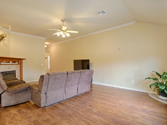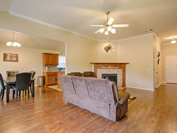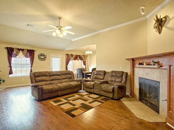 Great home on corner lot. 3 bedroom, 2 bath, and 2 car garage. Wood floors in living room. Corner fireplace. Open floor plan. Nice sized kitchen with breakfast bar. Large master bedroom. Walk-in closets. Koi pond near front entry. Fenced backyard with oversized concrete patio. Dog run on side of house. Roof replaced in 2017. Storm shelter in garage. Great location near Tinker, dining, shopping, etc. Come check this one out!!!