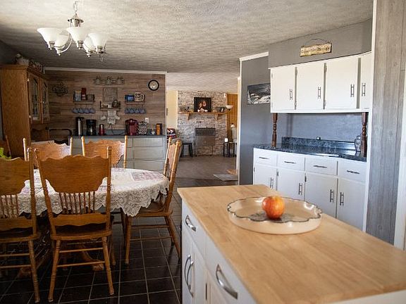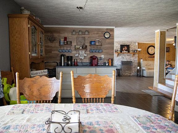 This 4 bedroom, 2 full bath Berm style home has had several recent upgrades including: coffee bar in kitchen, added stone wall, mantle, and gas fireplace in living room, remodeled upstairs bathroom, new laminate flooring in living room and bedroom, added extra insulation, and resealed foundation. Roof is only 5-6 years old. Septic was replaced in 2010. Outside you will find 2 detached garages.