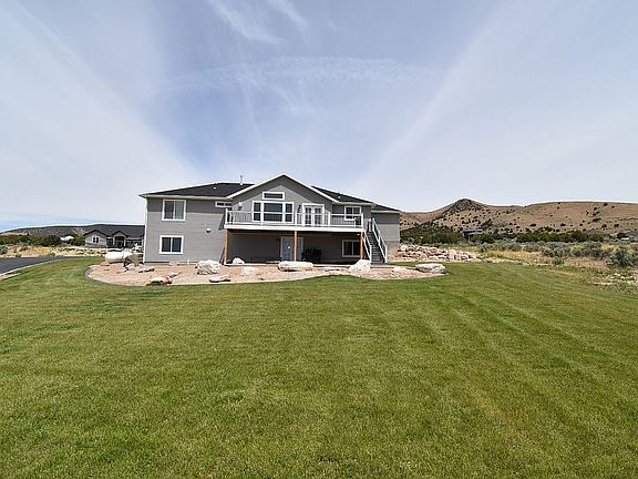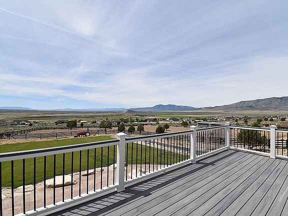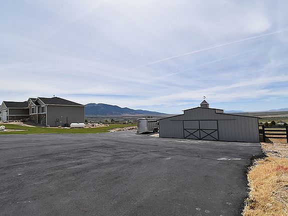 This house features breathtaking views and is a must-see! Outside is Craftsman style Hardie Board, rock, and stucco with upgraded light fix. Kitchen boasts Shaker cabinets with a large island, a gorgeous custom oven hood sits above new appliances, upgraded granite counters, and marble backsplash. Kitchen opens to a vault. great room with stunning views and a gorgeous, custom fireplace mantle.Bathrooms have elegant quartz counters and tile surrounds, walk-in shower and jetted tub in the master. Finished basement features a second master suite with a large custom walk in closet, and master bathroom with a double headed shower. A second family room, and a theater room with surround sound. The two acre parcel is equipped for the horse lover with a two stall barn that includes a tack room and hay shelter. The stalls have an automatic water feeder. The pasture is fenced with a horse friendly electric, vinyl fence. Yard is beautifully landscaped with rock features, a stamped concrete patio, stamped curbing, fire pit, and automatic sprinkling system.
