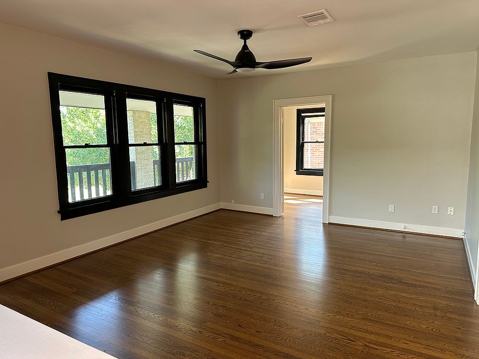 Beautiful recently renovated two plus bedroom top floor in a wonderfully restored duplex. This beautiful home is located on a quiet street in one of Houston's most walkable neighborhoods. Spacious second floor unit features oversized formals, den, sunroom, and huge balcony. Lots of charm and character with abundant natural light in every room. Gleaming hardwood floors throughout that have been freshly restored. Kitchen boasts all new stainless appliances and new in unit laundry. Shared backyard, additional storage unit and off street parking. Come say hello to your new home. Vintage charm with new and modern renovation. - Landlord pays lawn maintenance, water, sewer - no smoking - off street parking - cats and small dogs ok with additional fee