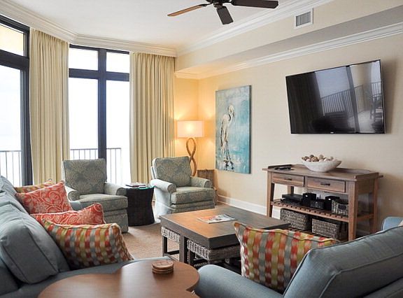 Escape to perfect panoramic views of the pristine Gulf Coast and forget about home in this exquisitely decorated unit. This is one of the premiere units with everything extra. This condo features incredible completely custom decor, granite countertops throughout the unit, and beautiful tile flooring. No need to worry about anyone else's party ruining yours, this condo is built with poured concrete with steel reinforcement, which is perfect for ultimate privacy and the security of knowing that this building isn't going anywhere during a storm. Includes access to an indoor and outdoor poor, the latter equipped with a relaxing lazy river and a waterslide for the thrillseekers. Just because you're on vacation doesn't mean you won't love the multi-level fitness center, tennis court and saunas featured here as well. This unit is perfect for personal use or to rent, and for families small or big.