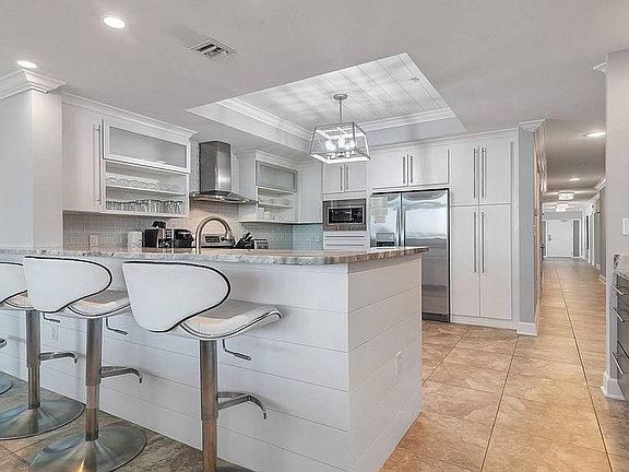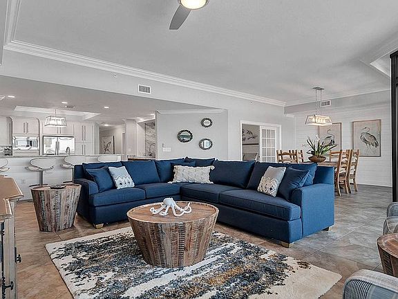 This extremely up-graded unit is one of the largest 4 bedroom units in the building; unit was designed by professional kitchen and bath designer. This unit has 2 separate living rooms; both with large TV's; one view of north; other view of Gulf. This unit has every upgrade imaginable; beautiful granite; custom showers; large refrigerator, pantry, custom granite and sinks. Custom cabinets and granite throughout.; very upscale unit with great rental income.