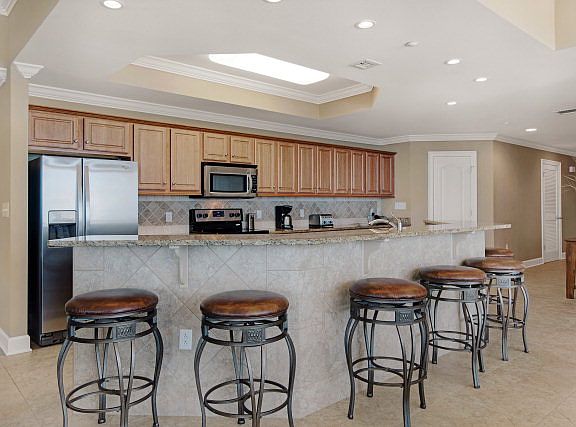 Oversized Gulf Front Luxury Condo! Phoenix West II, on 19th flr. Amazing view of beach/ocean. Fully furnished! Tastefully decorated. Premium Unit sleeps 9. Fully equipped huge kitchen with SS appliances, granite, wet bar w/ ice maker. Seats 14 in breakfast and dining areas. Large TVs, furnished for comfort, immaculate condition. Bathrooms have double vanities, jacuzzi tub and seprt shower. W/D in unit. Huge wrap around balcony. Heated indoor/outdoor pool w/ lazy river and slide!