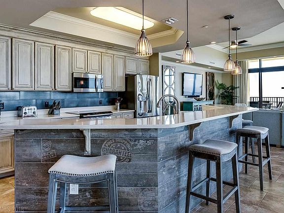 Take a Look at Virtual Tour in Listing.... ONE OF A KIND RARE PENTHOUSE!!! This condominium has numerous features that can't be duplicated and that are one of a kind in this tower. This condos balcony is over 4,000 square feet and has breath taking views of Alabama's Gulf Coast. You can see endless white powder sand for miles, enjoy amazing sunsets and you also have a front row seat to numerous fire works shows throughout the year. The owners of this condo spared no expense on the interior finishes and furnishings. Every detail has been covered. Professionally decorated and just professionally re painted. This condo has 12 foot painted ceilings throughout with Large Crown Molding, Floor To Ceiling High Impact Glass, The Kitchen Features, White Quartz Counter Tops in the Kitchen and Wet Bar, High-end Stainless Steel Appliances, Upgraded Full Height Cabinets with soft close draws, Full Height Cabinets with Glass upgrade over Wet Bar, Tile Kitchen Back Splash, Tile Bar Front, Pendant Light Over Bar,Custom Light Over Kitchen Table. The owner also had a custom step built that leads out onto the balcony from any room. Fine details were also taken in each bathroom starting with the Master, There is a Travertine Custom Tile Surround over Jetted Spa Tub, Travertine Shower with Custom Glass. Custom Mirrors, Custom Cabinets with Custom Pulls, Two Bedrooms have Tiled Showers, One Bathroom has Built in Tub Surround to have options other than just showers. All Guest Bedrooms have Pocket Doors into each bathroom. All Bathrooms Have Granite Counter Tops, Custom Cabinets with Custom Pulls. Each Bedroom has 12 foot Painted Ceilings with Large Crown Molding, Wall Mounted Flat Screen TV's and Large Tile Throughout. This condo is a must see and is for someone who truly wants something special.