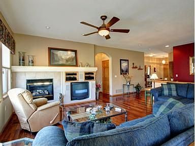 Grand elegance surrounds you as you enter this stunning 602 model, this home perfectly situated in the Heritage Eagle Bend golf community. The fabulous floor plan includes a large tiled formal entry opening to a spacious family room. Features include exceptional Brazilian Tiger Wood floors, a tile fireplace, expansive windows (upgrade), and entertainment inset with surround sound. A dining area leads to the sparkling kitchen boasting tile floors, beautifully veined-slab granite countertops and breakfast counter, tile backsplash, walk-in pantry, microwave, and smooth-top range. This gourmet kitchen is complete with 42? Maple cabinets! The main floor study with French doors is perfect for a home office. The large master suite has a coffered ceiling and a luxurious 5-piece bath with tile floors and countertops, an oval tub, separate shower, and a walk-in closet. The secondary bedroom has a large bay window (upgrade) .Entertain on the 24? x 10? deck that overlooks the beautifully landscaped, low-maintenance yard. Approximately $11,000 in landscaping makes this yard a park-like oasis. An extended and covered front porch offers views of the front yard and quiet neighborhood. The home has a finished (upgrade) 2-car garage, 6-panel stained wood doors (upgrade), designer colors, and air conditioning.You?ll love everything this gated community has to offer with the Eagle?s Nest restaurant, clubhouse, pool, and tennis. and movie theater, plus easy access to E-470 to the Tech Center or DIA. Additional features are:Antero BallroomBilliards RoomBocce Ball CourtsClubhouse (handicap accessible)Craft Room Fitness CenterGated CommunityGolf CourseLibrary/Computer CenterMeeting RoomsPools (Indoor & Outdoor)Restaurant and BarSauna & Hot TubTennis/Pickle Ball Courts