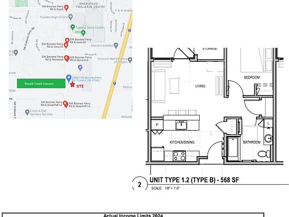 Looking for a 1 bedroom apartment in the Tualatin area? Plambeck Gardens, a brand new apartment community is being built right now in Washington County! Wouldn't you love to be the first person to sleep in your new home? Professionally managed by Pinehurst Management, Plambeck Gardens Apartments is located right on Boones Ferry Road, and expected to be ready for move-in right after the New Year! Apartment A103 will be a 568 Square Foot 1Bedroom, 1 bathroom apartment home scheduled for move-in mid to late January 2025. Residents applying for this unit must have an annual household income of at or below 30% of the median. Applications will be accepted by email beginning: November 4th, 2024. On November 18th applications will be placed into a Random Lottery. The first round of applicants will be contacted beginning November 19th by email and/or telephone, so be sure to write legibly! Once contacted, residents at the top of the waitlist for each unit type will be invited to begin the full application process. Bus line 96 serves SW Boones Ferry with stops to the north and south with each 1100 feet away. Bus line 96 goes into Tualatin (2.5 miles) where many services such as grocery stores, restaurants, and coffee shops are located. The community building and lobbies will have shared Wi-Fi. Ample parking will be available for residents who may have more than one vehicle. All areas of the site are accessible and at least one planting box in the community garden will be raised to be accessible to those in wheelchairs. The community building was designed to provide a space that would be flexible, beautiful, and an amenity that makes Plambeck Gardens residents proud of where they live. It will be used by residents for personal gatherings and relaxation space, and staff will use the space to host events. Renter is responsible for electric. Landlord pays water, sewer, garbage. Lease term is one year.