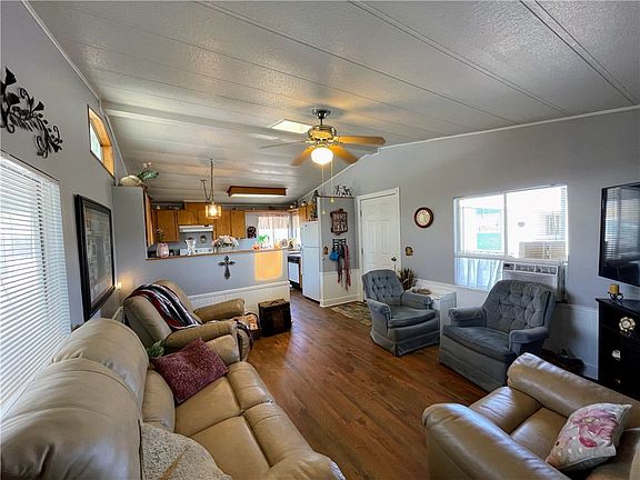This charming mobile home offers a comfortable living space with 2 bedrooms and 1 bathroom. The interior has been thoughtfully updated with new flooring, newly painted walls, and new doors, providing a fresh and modern feel. The vaulted ceilings add to the spaciousness of the home, creating an open and inviting atmosphere.