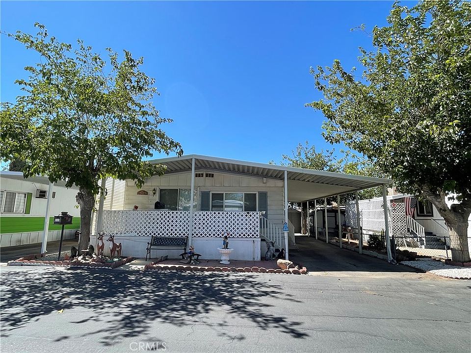 Take a look at this adorable mobile home in the quite, serene 55+ community of Apple Valley Village Mobile Estates. This spacious 2 bed 2 bath home has lots of space. A formal dining room with large windows and built in cabinets, a family room & living room that has sliding glass doors that goes out to the large covered patio to enjoy the lovely desert evenings! The kitchen has a 4 burner cooktop and oven, lots of cabinet space for storage. 2 bedrooms with big closets. Outdoors is a covered carport that has 2 storage sheds. This awesome property has so much to offer and is ready for someone to come love it and make it their special home. There is a community pool to enjoy during the summer months too!