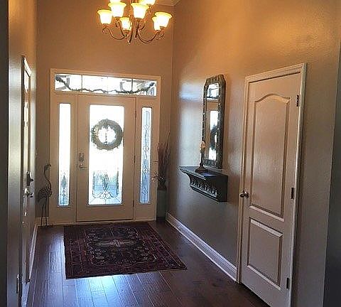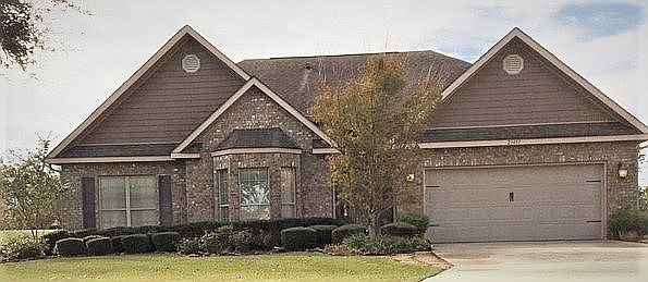 To view even more photos and details, visit www.DundeeFoley.com This is a meticulously maintained home in the golfing community of Glenlakes in Foley, Alabama - just a few miles from the Gulf of Mexico and within an easy drive to Mobile, AL or Pensacola, FL. There are three bedrooms, two baths, a multiuse sunroom, double garage, and lighted 10' X 28' pergola on a double patio - on a #3 tee box of the Dunes Golf Course. The patio and pergola are surrounded by lush landscaping, a glazed fountain, and a red stone walkway that leads to the front of home. The home is owned by seniors and is immaculate - no smoking, no pets, and no children. Entry hall has a 12' ceiling, pecan hardwood flooring, and 9-shade chandelier. The great room has a gas fireplace with gas logs, pecan hardwood flooring, French doors leading to the sunroom, and arched entries to the separate dining room, kitchen, and hall. The 10' X 14' separate dining room has a 10-foot tray ceiling, pecan hardwood flooring, plantation shutters, and a 5-shade chandelier. Can accommodate a minimum of 8 chairs as shown in photo. The eat-in kitchen has tile flooring, granite countertops, GE electric appliance that convey with property, plantation shutters, pantry, Delta faucet sets, and a unique trash/recycle center with a granite top (could be used as a bar). The multiuse sunroom has tile flooring, plantation shutters, French doors to great room, and doors to kitchen and patio. This room could serve as an office, extension of the great room, craft or art room, etc. The large master bedroom has a 10-foot tray ceiling, pecan hardwood flooring, and can accommodate a king size bed (shown in photo with queen bed, two dressers, and a chest). Off of the master bedroom is the master bath with tile flooring, an oversized tub, separate shower with glass door, granite countertops, two porcelain basins with Delta faucet sets, upgraded adult-height Kohler toilet, large frosted glass window, and access to the walk-in closet - which has pecan hardwood flooring. The hallway that connects the bedrooms has pecan hardwood flooring and provides access to the laundry - which has a tile flooring, Whirlpool front-loading washer and dryer (conveys with property), like-new wire shelving, and ample space for vacuum cleaners and other implements. Also off the hall is a bathroom with tile flooring, granite countertop, porcelain basin, Delta faucet set, tub/shower combo, and linen closet. The second bedroom is carpeted with a bay window and double closet. The third bedroom also is carpeted (shown in photo with king bed) has a double closet. Features of this home include 5 1/2 inch baseboard throughout and an abundance of gorgeous crown moldings, double pane windows throughout, many ceiling fans with and without lights, electric heating and cooling, electric water heater, rain gutters all around, automatic lawn and bed irrigation system, Schlage electronic locks on front entry and garage entry doors, and a driveway that can accommodate up to 8 vehicles. The home interior was painted 2020 with premium Valspar Signature satin paint - "Anew Gray." The heating/cooling system is under contract via Middle Bay Services, and Pest/Termite Control is provided by Wayne's Environmental. The home is MOVE-IN READY. Some of the home furnishings will be made available to the home purchaser at pre-estate sale prices. (The owners are moving to their second home which is fully furnished.) The home conveys with never-used hurricane window and door protectors (stored in tubes in garage); a 4,000 W Ironton gas generator, fuel containers, and accessories (new 2020); heavy duty portable shelving in garage; two fiberglass ladders; and a Ryobi electric pressure washer.