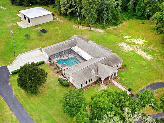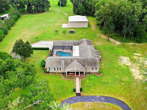 This 14.8 acre Brooksville residence emanates the classic style of a true southern estate. Located close to town and just 1 mile from the Brooksville Country Club, this property places you 40 minutes to Tampa and just 15 minutes to the Brooksville Airport. Down the extended driveway and past the Grandfather Oaks, you will find the main home entrance with an inviting front porch. The main home features 4 bedrooms plus an office, 4 full bathrooms, a chef's kitchen opens to the formal living and dining areas, a HUGE 23'x23' family room PLUS a game room. The owners of this property have thought of every detail including a dog shower in the mudroom and a reading loft above the game room. Storage will never be an issue with an attached 32'x22' garage with 16'x8' storage room plus the detached 3000 SQUARE FOOT GARAGE WITH THREE 16 FOOT DOORS. When you enter through the front door, you are in the open concept formal living/dining with a wood-burning fireplace and chef's kitchen with a spacious island perfect for entertaining. The kitchen features granite countertops, a microwave drawer, a Dacor double electric oven with 6 gas burners and griddle, a pot filler above the stove, a Fisher and Paykel double refrigerator/freezer plus a copper farmhouse sink. The engineered hardwood floors are hand-scraped and the entire home has plantation shutters. The owner's suite includes a spacious walk-in closet, private bathroom with garden tub and walk-in shower plus a reading nook with built-in bookshelves. The resort-style screen-enclosed pool and spa were just refinished in 2021 and include a salt chlorination system, in-floor cleaning system along the newer gas heater. The massive 50'x60' concrete block construction detached garage and workshop includes a half bathroom plus office space with a mini-split AC unit. The detached garage has a metal roof, a court basketball court outside plus a 50 amp RV hookup. The front drain field was recently replaced and the exterior of the home and garages were just painted in 2021. This property is zoned agricultural and is NOT located in a flood zone. THERE IS AN ADDITIONAL 14 ACRE ADJOINING PROPERTY AVAILABLE WITH STOCKED BASS POND, DOCK AND POLE BARN. MLS #W7838916