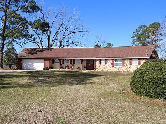 If you are longing for peace and serenity -LOOK! This countryside home is beautifully sited on 14.5 acres more or less. This rustic retreat overlooks a green rolling countryside. The home features a stone-wood exterior with the porch & foyer having stone floors. To the left of the foyer is a large kitchen with an additional dining area, a massive laundry room & half bath. Beyond the foyer is a nice living room with a massive stone fireplace with Double French Doors opening on either side of the Living Room onto the back of the home. The right side doors open to a large screened porch on the back. The interior features a large Master Suite, another bedroom, bath, and bonus room/office. There's a 2 bedroom, 1 bath guest home large barn, & 16 dog kennels with it's own septic, & a RV Canopy.