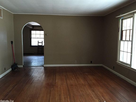 Everything you could need on one acre on the outskirts of Paragould. Up the large brick steps and in through the front door you find a hallway to 3 large bedrooms and one bathroom all carpeted with walk-in closets. Off of the hallway sits a large formal living room with original hardwood and enormous windows letting in lots of natural light. Next is the kitchen with wall to wall cabinets. The kitchen is open to the dining area or second living space. Off of the kitchen is a second full bathroom.