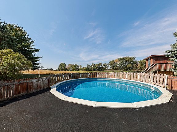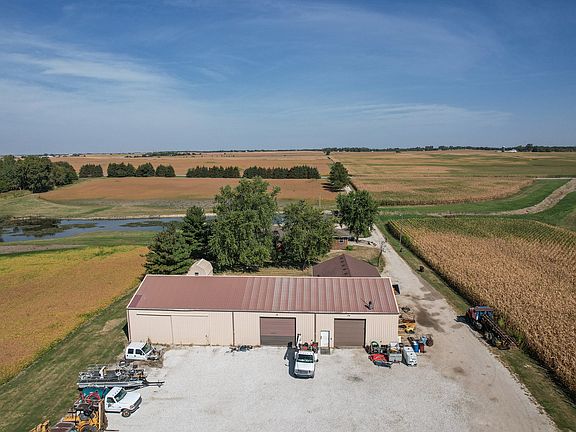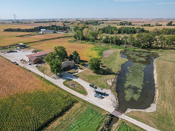 22 MOL acres horses welcome! 3 bedroom 3 bath walk out basement ranch with pellet burning fire place, overlooking a Large private pond and beautiful rolling land. Fully finished basement with family room & bar. Huge shop/pole building features 14' ceilings, 3-12' doors, heated floors, wood stoves, compressed air lines and an air compressor that stays with the property, 1/2 bath and laundry, paint booth/ big wash bay with a big floor drain. This property allows you to work and play without leaving home! 1 acre pond, horses allowed. Wind mills and 50/50 farm income nearly pays for property taxes per seller. Shop Building is well insulated, has 24x42 wash and paint bay, 34x42 maintenance area, 30x30 welding area, 3rd bay with loft for storage 48x42. Don't miss this one!