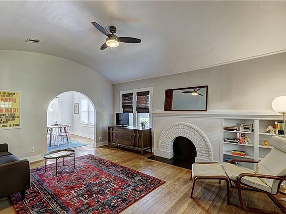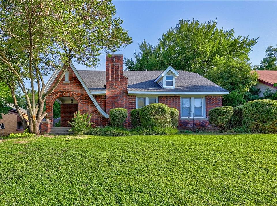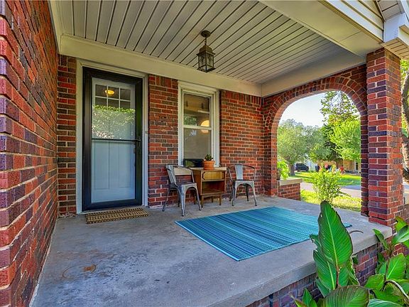Attractive, brick Tudor home just blocks aways from the Plaza District. This light and bright two bedroom, one bath home has been tastefully updated with a balance of both new and original character. Barrel vaulted ceilings and arched doorways add to the charm. Owners have recently completed remodeling the bathroom and kitchen. Walk into the kitchen and notice the hexagon floor tile, light quartz countertops, open shelving, freshly painted cabinets and brand new stainless steel appliances. The bathroom is just as impressive with striking black penny tile flooring, white subway tile and updated plumbing fixtures. Bathtub will be reglazed this week. Entire interior of home has been professionally painted with a neutral gray color palette. Separate utility room. New water heater. Detached garage to be sold "As-Is". The covered front porch allows you space to visit and relax. Enjoy a lifestyle that can only be found living in the urban OKC core.