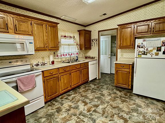 Check out this 3 bedroom, 2 bathroom manufactured home on just under an acre of land. Large front yard along with a covered carport and outbuilding for extra storage. Home features primary bedroom and bathroom with double sink vanity, garden tub, shower and walk in closet. Spacious kitchen with ample countertop and cabinet space. Living room offers plenty of room to entertain family and friends for holidays and special occasions. Additional two bedrooms are separated by a full bathroom. Will not last long!