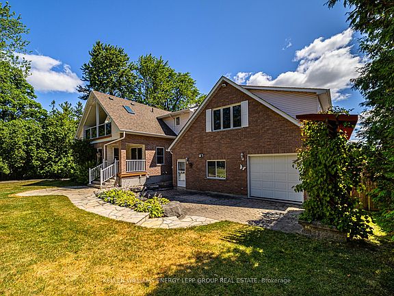 Tucked away on one of Courtice's most desirable roads, this rare in-town property spans a private, fully landscaped 0.75-acre lot designed for resort-style living. This impressive 3+1 bedroom, 4-bath custom home offers an unmatched outdoor retreat featuring a 20' x 40' saltwater pool, a cabana complete with change room, bar area with sink and bar fridge, a private bathroom, outdoor shower, and a real sand volleyball court surrounded by mature trees, lush greenery, and a pond with goldfish. The heated double garage includes rear yard access, and the expansive driveway accommodates up to 20 vehicles, plus designated RV and trailer parking. Inside, the home offers warm and inviting spaces, including a formal dining room with pocket French doors and hardwood floors, and a cozy living room with a wood-burning fireplace, pot lights, and walkout to the backyard. The primary bedroom is a luxurious escape with its own composite deck and covered porch featuring skylights and a hot tub, two large closets, and a five-piece ensuite. A finished basement provides additional flexible living space, making this one-of-a-kind home ideal for both everyday comfort and exceptional entertaining. Ideally located just minutes from top-rated schools, parks, shopping, restaurants, and convenient access to Highway 401 and 418, this property combines privacy with everyday convenience.