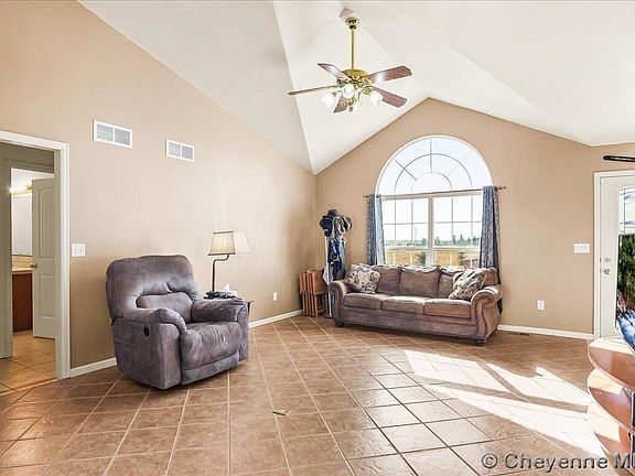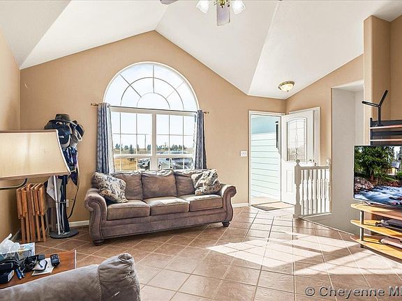**If you’re a highly qualified buyer, it’s possible to assume up to $326,000 at just 2.25%!!! *Experience the essence of authentic Wyoming living with this spacious 5-bedroom, 3-bathroom residence nestled in an idyllic rural setting just north of Cheyenne. This home boasts an array of appealing features, including tile flooring, brand-new carpeting, and a recently completed basement. The main level offers an inviting open layout, ideal for hosting gatherings and family get-togethers. The updated kitchen shines with granite countertops, stainless steel appliances, and a generous pantry. The living room charms with its vaulted ceilings and a double-sided gas fireplace, perfect for cozy evenings. The primary suite indulges with a sizable walk-in closet, a luxurious 5-piece bath, and convenient access to an expansive deck that spans the full length of the home. The fully finished walk-out basement presents a family room, recreational area, two spacious bedrooms, and a full bath. French doors from the family room lead to a covered patio, enhancing your outdoor enjoyment. With a 3-car attached garage, you'll have ample space for vehicles and recreational equipment. This home is equipped with central A/C, an updated furnace, a water heater, a 16kw home generator, and a solar array capable of powering the entire property. A humidifier ensures year-round comfort. Outside, discover a substantial shed currently used as a chicken coop. The pull-through 36x40 steel barn is designed for an exceptional equine experience, featuring dual stalls, a loft, water access, and corral space. An additional loafing shed offers shade for your animals, and multiple water access points are strategically placed across the 5.15-acre property. The property is thoughtfully landscaped, showcasing trees, front yard sod, and a fenced backyard, completing this picturesque Wyoming property.