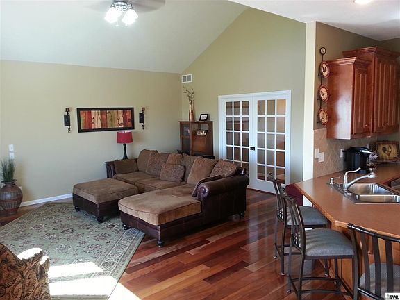 Rare find. 3+ acres w/pond on hardtop near town and quick access. Beautiful home with open floor plan. Gorgeous hardwoods, nice colors throughout, soaring ceilings great atmosphere. Fabulous master bedroom and bath with walk-in shower, jetted tub, separate vanity stations, natural lighted walk-in closets, etc. Huge walkout rec room with wet bar. Lots of storage space. Watch the ducks and geese from the low maintenance deck overlooking the pond. Great quality of life. Come see for yourself.
