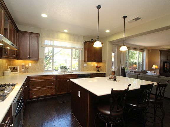Beautiful 2006 build Winding Walk former model with fine appointments and upgrades. 3 Bedrooms plus loft ( or optional bedroom ) Delightful chef's kitchen with quarts counter tops, stainless steel appliances and dual oven connect to serving bar with min fridge opening into the spacious dining room. Designer paint, plantation shutters, custom hardwood floors and crown molding make this the perfect home for the most discerning buyers. The family room opens into the lush landscape and well appointed hardscape for family BBQ and entertaining. Seller will entertain offers between 585,000 and 599,000