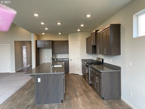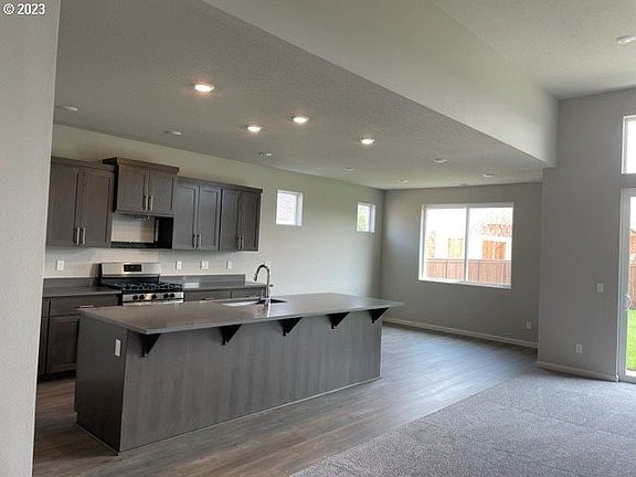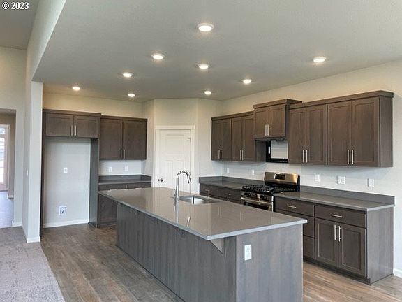 This modern Cameron floor plan features a Mini home attached with a separate entrance, living area, bedroom, kitchenette and stackable W/D hookups, its own bath and more. Great for short term or long term guests. The main home has vaulted ceilings, high windows, tall slider that leads to a fully fenced back yard, with landscaping and irrigation. Kitchen features quartz countertops, laminate flooring, island, gas stainless range, dishwasher and microwave. 3 car garage! Home is under construction, interior photos are of like home. This home backs to green space.