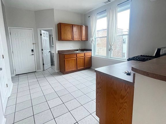 You have to see this updated 2 bedroom/ 1 bath apartment in the UIC/Medical District neighborhood of Chicago! A beautifully updated eat-in kitchen offers plenty of counter space with a breakfast bar. The main space is large, open, and airy. The bathroom is fitted with updated tile, vanity storage, and a soaking tub. One bedroom fits a full-size bed and dresser and the second bedroom fits a twin size bed and dresser or can be used as an office. Central heat, and A/C available! Laundry available in the building