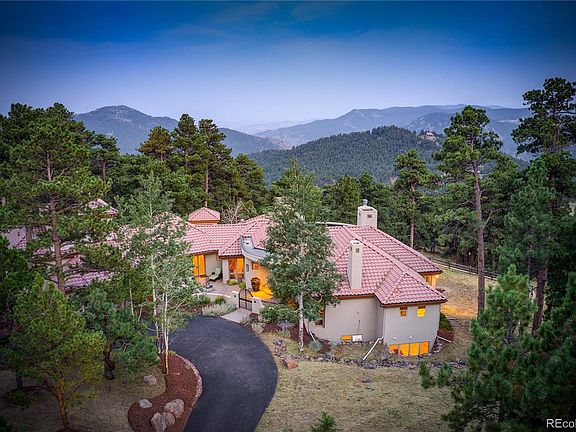 IDEAL HOME FOR MULTI-GENERATIONAL LIVING AND TELECOMUTING FOR YOUR WORK AND/OR SCHOOL! PERFECT FOR HOME BASED BUSINESSES OR THOSE THAT NEED ADDITIONAL COLLECTION OR HOBBY SPACE! Nestled into a natural landscape, this thoughtfully designed custom home provides the quintessential Colorado experience with exceptional value, convenience, privacy and comfort. Located on 1.3 acres in the beautiful foothills of Golden/Genesee; this 5 bedroom/8 bath/7 fireplace home has over 8,000 sq. ft. of finished living area plus over 3,000 sq. ft. of garage/storage/workspace and provides an easy commute to world class skiing, downtown Denver, DIA and the surrounding metro area. *** The grand entrance opens to an expansive great room with a wall of windows, two stone hearth fireplaces and updated wrap around deck that showcases breath-taking southern mountain views! Beautifully walnut stained hardwoods lead you through a masterfully crafted open floor plan with a mountain contemporary and classical Tuscan blended design - flowing, warm, comfortable and relaxing with everything you need on one floor. Ideal layout for daily creative inspiration, working from home, easy family living and elegant large group entertaining. Truly everything your heart could desire! *** Additional amenities abound with a main floor master suite, main floor guest suite, laundry, cozy family room, in-home theater, and private office (perfect for working from home). A 2nd level private suite with study/office and balcony (ideal set-up for multi-generational living or caregiver quarters). A relaxing lower level with a large entertainment area, a gorgeous wine room/library with built-ins, exercise room and two additional bedroom suites. The additional outbuildings/garages (over 2233sqft) are perfect for home based businesses, hobbies, collections, recreational toys etc.*** Make sure to click on the link for the 3D virtual tour for more details. Call us today for your own private tour!