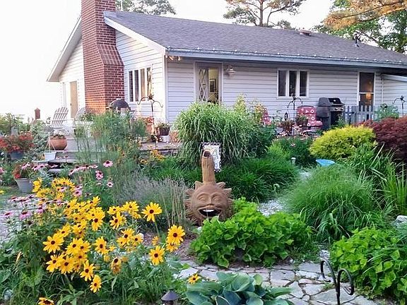 Lovely waterfront, two bed, two bath home with water views from all rooms. Kitchen, living area, guest bedroom renovated in 2019 with huge granite island. 2021 addition features 14 x 26 dining and office area, all new siding and upgraded metal roof. Wonderful, detached guest quarters (living room, one bed, bath and deck) above the 900 sq ft two car garage with new R-21 insulated doors. Beautiful well-maintained native landscape compliments the water view deck, covered porch, and large screened porch. A sixty foot L-shaped dock has a 6000 lb lift to accommodate your boat. Relax on your pier while having a drink and enjoying the spectacular sunset.