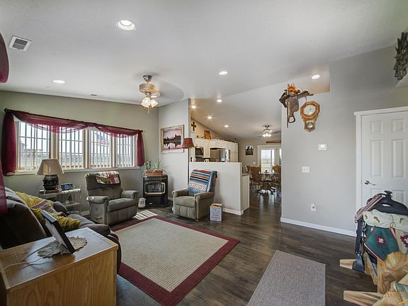 Immaculate, newer, ZERO ENTRY home with elbow room and views! This 2 bedroom, 2 bathroom home features a master suite, open concept kitchen/dining and living area has vinyl flooring everywhere except the bedrooms. The land has been beautifully landscaped and includes several trees. The exterior has been freshly painted and a brand new roof, gutters, and downspouts are in progress. The 8x14 3-seasons room complete with hot tub and views of Mount Rushmore on clear nights, is the perfect end to the day! Plenty of parking and you can bring your chickens! This home has been lovingly cared for and is move-in ready! Schedule your tour today!