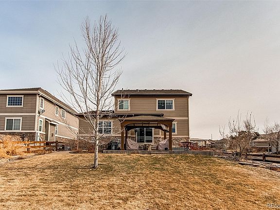 Exceptional 3 bedroom, plus office, 3 bathroom, 2 car garage home located in the highly coveted Tallyn's Reach Neighborhood! This home sits on a huge corner lot, cul-de-sac street with stunning south and west mountain views and is highly upgraded inside and out. As you approach the home, the curb appeal will instantly grab your attention with the lush front and rear professional landscaping, gardens, flower beds, brick accent (full house wrap), mature trees, massive 20x28 patio and gazebo. As you enter, the large foyer and office with glass French-Door invites you. The extended family room with large windows, stone accented fireplace with custom mantel feels warm and ideal for entertaining or spending time with family. The open concept includes a dedicated dining space and true gourmet kitchen featuring double ovens, 36" gas stove, SS appliances, granite counters, staggered cabinets with crown molding and corner pantry. The upper floor features laminate wood flooring and the layout is ideal with a spacious primary bedroom boasting STUNNING mountain views, 5-piece bathroom with oval soaking tub, dual vanity sink and walk-in closet, two large secondary bedrooms, large secondary bathroom with dual vanity sink and herringbone custom tile work and generous sized laundry room. The full basement has a ton of extra square feet that can be finished with high ceilings and additional bedrooms. Other key elements include central A/C, oil-rub bronze door hardware, wood floors through most of main floor, upgraded carpet, gas line for BBQ, storage shed, smart home features, tile roof (insurance savings?) and CHERRY CREEK SCHOOL DISTRICT! Tallyn's reach features parks, rolling hills, mature pine trees, parks and trails. This is a very well cared for home, in a great location and priced very well for the area.