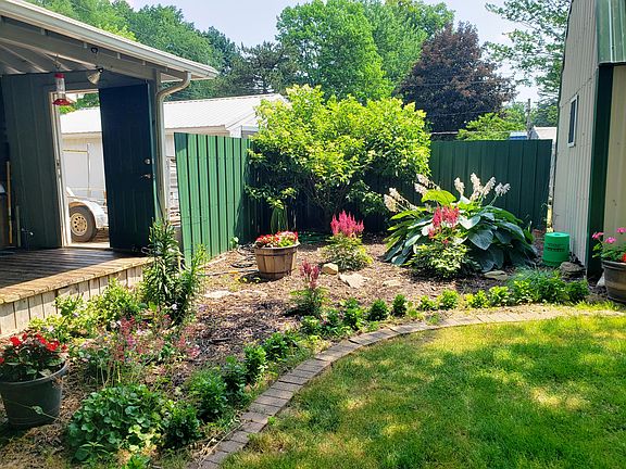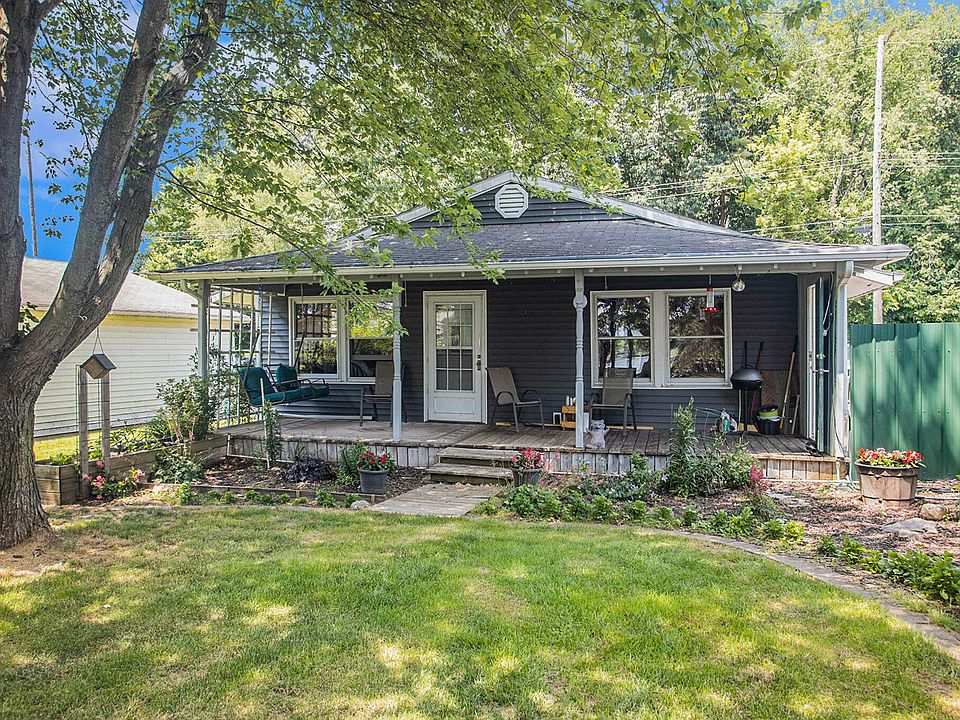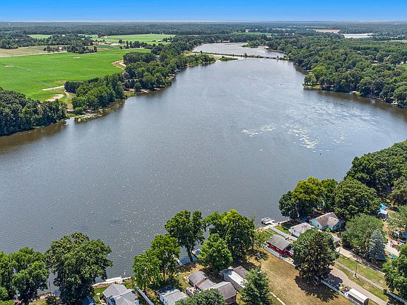 Great Opportunity on the St Joseph River just outside of Mendon. This Ranch style home has a covered porch w/beautiful flower gardens is a great place to relax & unwind and enjoy the views of the River. Features include a good size eat-in kitchen, large living room, 2 bedrooms and 1 bath plus a 15x23 area (previously attached garage) has hook up for the washer and dryer and could be finished for additional living space or turn back into a garage if you prefer. New Vinyl siding installed in Summer2022. Moisture Barrier system professionally installed in the crawl space. Nice deep shaded lot w/storage building w/loft plus small storage shed. The riverfront has steps down to the water, dock and several deck areas. Bring your fishing poles, kayak or pontoon boat & Enjoy!