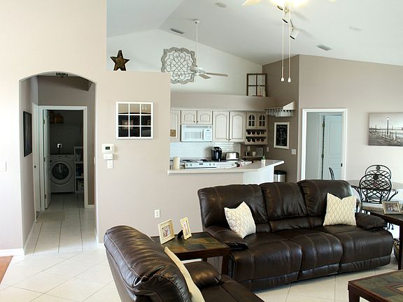 This MOVE-IN READY, Florida dream home is conveniently located in the popular Section 15 neighborhood of Port Charlotte, FL. This elegant family home features a beautiful open floor plan anyone will love. The heated in-ground pool and lanai area is perfect for fun with your family and friends. Neatly tucked in a quiet neighborhood, the home affords the owner privacy, while still being just a 5 minute WALK from the grocery store. Only a 10 minute drive to the mall, Charlotte Harbor and some of the best restaurants in southwest Florida. CALL 812-621-1234 to schedule an appointment to see this beautiful home! -Beautiful vaulted ceilings -$2K+ in upgraded window shutters -Spacious breakfast nook -New pool pump -New water heater -2 car garage -Freshly painted in 2014 -BIG driveway -Incredibly cute dolphin pool fountain -City water and sewer -Irrigation system with well. -Built in 1999 This 3BR/2BA open room floor plan offers raised panel cabinetry, 12 to 14 foot vaulted ceilings throughout,the entire house, except for one guest bedroom; that along with extensive tile, and or wood flooring with just the bedrooms carpeted... Additional features include a full accordion hurricane shutter protection along the entire length of the lanai, along with walk-in closets in each of the 3BR's and an 8 foot slider. How about an over sized garage with a fully screened entry door, separate shop area, key less entry, and an extra wide drive... that along with a huge 41x25 lanai, as well as a 23x11 covered lanai area.