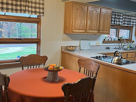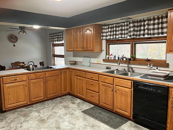 All brick ranch home located on 4 acres. This home has 3 bedrooms, 2 bathrooms, a large kitchen with oak cabinets, main floor laundry, living room and dining room. The basement is partially finished with lots of storage areas. There is a 1 car attached garage, covered front porch, and rear patio. This home has energy efficient geothermal heating and cooling!