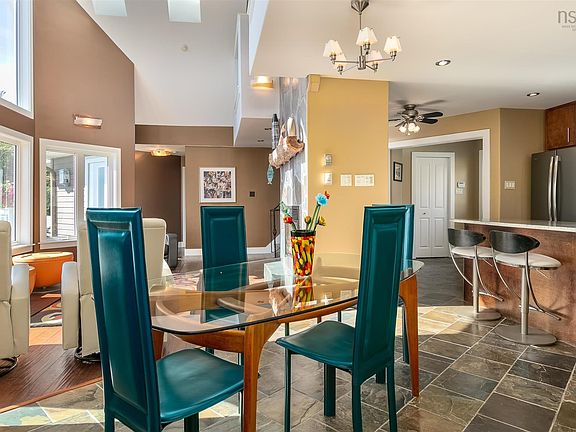 This contemporary home sits proudly on the edge of a gently sloping granite coastline with distant views of the Peggy's Cove Light. Explore the 555' of direct oceanfront on the waters of St. Margarets Bay. Adventures await amongst the fourteen acres of characteristic Nova Scotia wilderness; soft ferns, wild blueberries and reindeer moss are tucked amongst giant granite boulders. The waves have sculpted the dramatic granite coast, creating smooth rocks, a perfect natural slipway for a kayak or a summer swim. Just as unique as the surrounding natural environment is this contemporary 3/4 bedroom home which has so much to offer. Finished on all 3 levels, this is an exceptional property. The generous open concept kitchen with high-end appliances, granite countertop and custom cabinets is perfect for the family chef. The living/dining room features 17' vaulted ceilings, a propane fireplace with natural NS slate and exceptional ocean views. The main level also includes 2 bedrooms, a walk-out deck and a spacious 3pc bath. The second level takes you to the principal bedroom, light and bright with skylights, a walk-in closet, and a 3 pc bath. The garden level is brilliant, with large windows capturing the ocean views. There is a spacious fourth bedroom or games room, four-piece bath, wet bar, second propane fireplace and family room where you can spill out to the beautiful deck. Additional features include limestone and slate floors, engineered hardwood, custom wrought iron stair railing, central vac. Unique subdivision potential to create either a second large oceanfront lot or several smaller oceanfront lots. Property is being sold Turn-Key with all furniture, dishes and bedding. The sale includes a 40' container - excellent for storing garden furniture, tools, gardening supplies and even a car! 2021-10-26