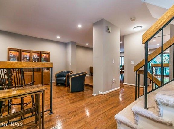 Spectacular 4 bd/3.5 ba, 3 lvl END unit TH. Open floor plan w/ HW flrs & recessed lights on ML. Updated kit offers granite, custom cabs, new appls, eat-in area & SGD to deck. FP in DR & sunken FR. 4 BRs on UL ~ MBR has walk-in closet & updated en suite bath. Huge walk-out LL rec room w/ FP & SGD to patio & fenced lot. Unit backs to trees & peaceful setting. Fresh paint & many updates throughout.