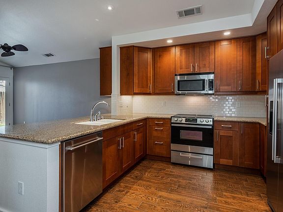 How do you spell affordable luxury? IKEA! Due to a fire in 2013 this home was remodeled from top to bottom including wood plank ceramic tile flooring, granite counter tops in kitchen and bathrooms, subway tile backsplash, beautiful IKEA soft close cabinets, rarely used high quality appliances, finished garage, dual pane windows, in-window window treatments, higher ceilings and newer lighting. Outside, the roof line was redesigned for a custom look. Plus a privacy fence and astroturf allow for low maintenance and areas to entertain in the front and back yard. Amazing opportunity!