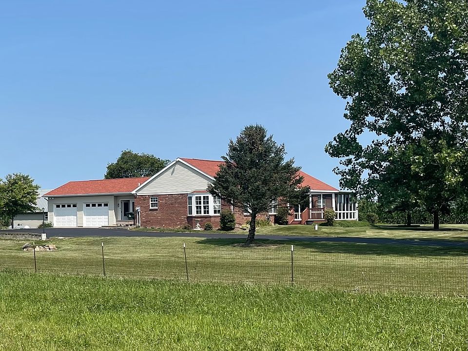 Welcome to your dream home! This move-in ready, 3-bedroom, 2-bath brick ranch on 2.19 acres offers the perfect blend of charm and practicality. You'll have a 2-car garage, barn, large mini barn/workshop, breezeway, and a sunroom to enjoy the beautiful surroundings. The full basement provides plenty of space for storage or additional living areas. The gorgeous kitchen features a convenient island, making it the heart of the home for all your gatherings and culinary adventures. Don't miss the opportunity to call this delightful home your own!