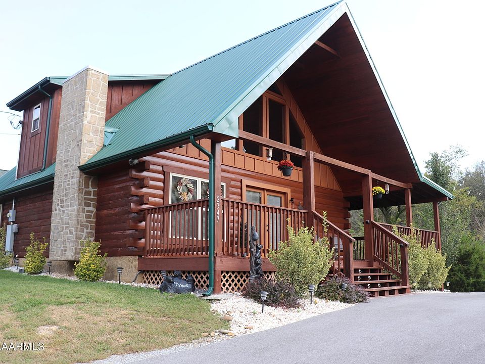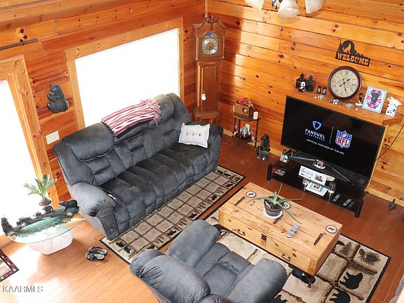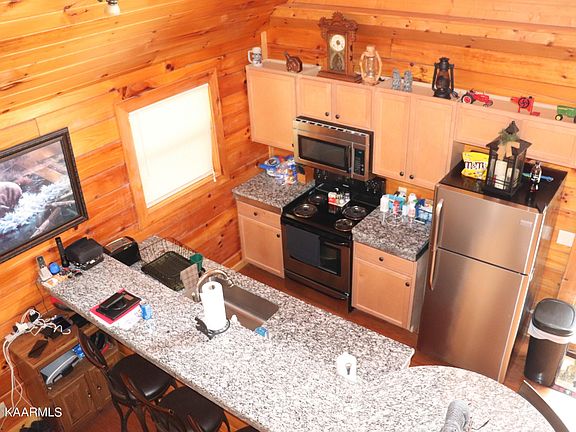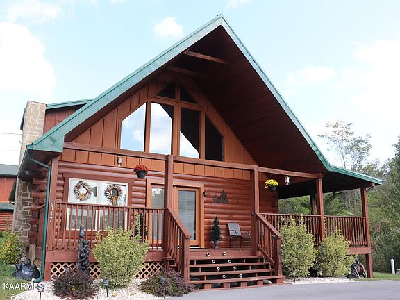 Beautiful, authentic log cabin w/ nice view. One-owner, purchased new in 2017. Main level features lg open family area w/ elect fireplace, eat-in kit w/ granite countertops; 2 bedrooms+2 baths; laundry. Level 2 features BR and 3rd full bath, plus bunk areas. Wrap porch w/ nice views. Lg level parking. GREAT OVERNIGHT RENTAL for income $$$ potential! Located in extremely popular Eagle Springs Resort w/ low HOA fees; resort pool, picnic pavilion. City water & sewer, county roads (rare in resorts!). Pool, common area mowing, trash dumpsters, & more provided in HOA fee. 6 minutes from new Soaky Mtn waterpark, Sevierville Convention Center; with lots of shopping, grocery stores, restaurants nearby! Approx 12 miles to DollyWood and Pigeon Forge! Buyer to verify all measurements and i One of the newer cabins in this popular resort and in well cared-for condition. Construction was completed in 2017. (List agent has been in resort since 2009 and can confirm). Owner knows of no issues, feels no repairs necessary and wants to sell as-is, but buyer inspection is ok. Items to convey are: Appliances; electric fireplace (can probably be converted to wood or propane by professional since chimney is in place); washer/dryer; bar stools (6); coffee table; king bed in MBR w/ mattress & box springs; grill. Owners reside on property so no rental history. However, similar cabins in resort gross $50K-$70K+ annually, depending on rental mgmt.
