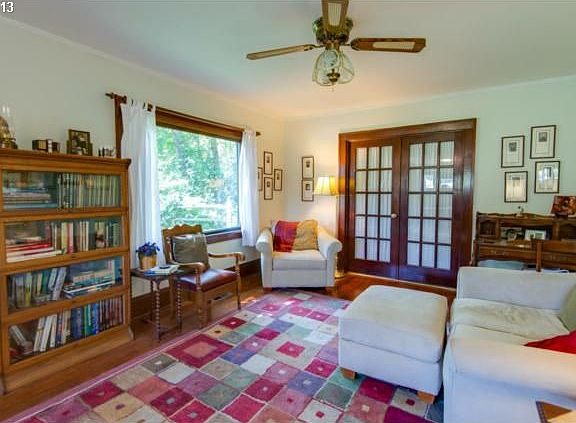 Lovely country estate with quiet setting, Charming through out w/original wood work,doors,Hrdwd floors, windows, built-ins and more. upper deck off master 17x7. Detached 1 car garage. office den w/french doors on main floor. Kitchen has original cabinets. Private setting with 18 blue berry bushes.