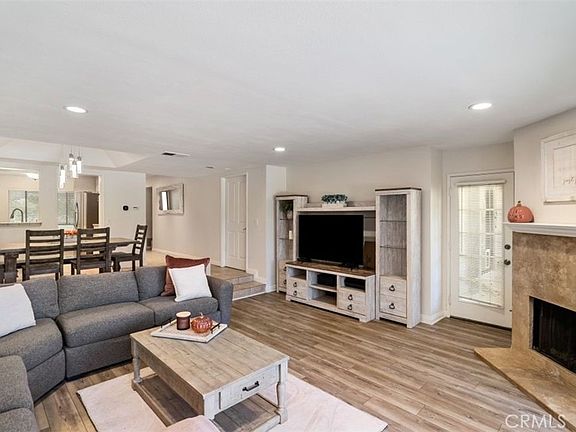 Welcome to this gorgeous, end unit home in the gated community of Finisterra on the Green. The lot overlooks the golf-course with amazing views and ample privacy and the unit has an abundance of light through the large windows. This spacious two bedroom and two bathroom home has fully renovated bathrooms, stainless-steel appliances, and new paint throughout. The primary bedroom with en-suite bathroom features a walk in closet and a sliding door that opens to the porch overlooking the golf-course. The oversized family room is perfect for relaxing with a warm fireplace and spectacular views. The dining room is perfect for any large gathering. The kitchen has a great amount of counter space and a breakfast nook. The home comes with a single car garage and designated parking space as well as access to guest parking. The community provides trails, community pool, walking and hiking paths, a putting green, and access to the Mission Viejo lake.