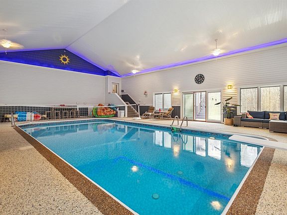 Spectacular Lakeville custom built home. A new roof has been added in February 2024. This property includes 4 bedrooms, 3.5 bathrooms, home office with transferrable STARLINK internet & is located on almost 4 acres. You will be wowed by the extensive woodworking & built ins that can be found here. This home has double pane Pella windows & applia…Subzero refrigerator, Thermador 5 burner gas stove & Thermador built in double ovens. As you walk in the home, you will notice the open concept of the great room & the 3-season room with ALL the windows overlooking the backyard & woods…stunning views during ALL four seasons of the year. Off of the eat in kitchen area, you can walk out on the new lighted composite deck w/stairs to the lower patio & backyard. The main level has a large master bedroom suite w/fireplace, large windows, walk-in closet, jetted whirlpool tub & custom shower with body sprayers. In addition on the main floor are two other bedrooms, a full bathroom & a half bath, an office & beautiful formal dining room. The laundry room is located right off of the 3 car garage. The finished walkout basement has a large recreational/family area w/9 ft ceilings. The lower level also has a huge wet bar, theatre room w/ 4k projector system which has a 10’ screen, & epic sound system. A partially equipped exercise room & a 4th bedroom w/windows & a full size bathroom. The downstairs also includes a large utility room, linen closet & 2 small multipurpose rooms. This home also features a year round INDOOR salt water (18x36) swimming pool with large seating area & heated floors. There is a commercial grade dehumidifier system in the pool utility room. There is a staircase from the basement to the pool & stairs from the main level as well. The detached large building has approximately 6000 square feet with high ceilings. This building also includes an attached mother in law suite/apartment with 2 bedrooms, full bath, laundry facilities, lots of closet space, living room & full kitchen. The home features a newer Lennox furnace & air conditioner. The entire property can be heated with the outside wood burner if desired. Great location near Potato Creek State Park, Newton Park & only 20 minutes to South Bend. Exquisite one of a kind property. What’s special: Indoor pool, Separate mother-in-law apartment, Theater room, Finished walk-out basement, New roof, Huge multi-purpose building, 1st floor laundry, 3 season room