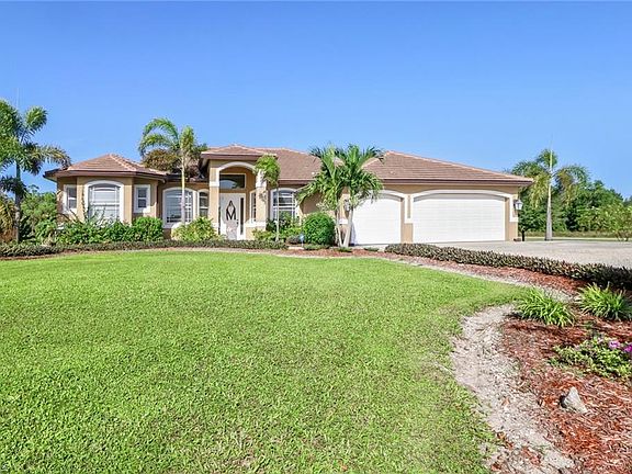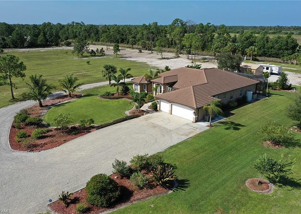 RARE opportunity to own such a massive house on ALMOST 8 ACRES of cleared land that is situated on the CANAL so you can enjoy fishing, in additional to all the other fun you will have here! 4 Bedrooms + Den, 3 Full Bathrooms, 3-Car Garage, Heated Salt Water Pool with Screen Enclosure, Newer Tile Roof (2017), Whole House Reverse Osmosis System, Concrete RV Pad and a Storage Shed. This 2,800 sqft home shows like a model. Enter through the glass french doors into your formal living room overlooking the tranquil pool area. Travertine flooring set in a french pattern, wide baseboards and crown molding with a light paint palette throughout. Volume ceilings give an added sense of spaciousness and luxury. The Chef's kitchen is located in the heart of the home and has stainless steel appliances with ample cabinet space and a walk-in pantry. Ideal split bedroom floor plan that provides privacy for everyone. Irrigated landscaping is manicured and there are an abundance of delicious fruit trees to enjoy- mangos, kumquat, bananas, tangerine, limes, guava. This home may sound like a dream, but you can make it a reality!