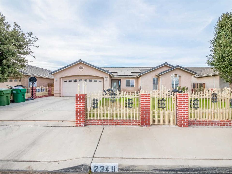 Come out to take a closer look at this 4 bedroom 2 bathroom home with solar! You'll find great curb appeal and a fully gated front yard. The home has a very large backyard and a spacious covered patio with stamped concrete. The master bedroom has a private bathroom and walk-in closet. The home has tile flooring throughout and neutral paint colors. The garage has a finished floor and would make a good workspace.