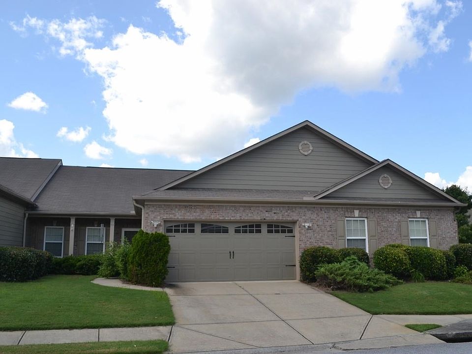 Move in ready! Fee simple stepless ranch townhome. Community is very nice and well kept. Great pool area. Private front porch entry. Open concept, cathedral ceiling in great room, dining area and kitchen. Great room with niche over fireplace for TV. Interior is light and bright. Kitchen with stainless steel appliances, including the refrigerator. Maple-stained cabinets with granite looking Formica counter tops in great condition. Separate pantry, new carpet where there are not hardwoods. Large master suite with cathedral ceiling and walk-in closet. Master bath, dual vanity, separate garden tub and shower. True separated bedroom areas. Guest room off separate hallway with full bath, large closet and small linen closet. All ceilings are 9' except where they are cathedral. Blinds in every room. Large 2-car garage with shelves. Cozy backyard with patio and landscaped for more privacy. Close to Mall of Georgia with shopping, restaurants and more. Easy access to Interstate-85 and I-985.